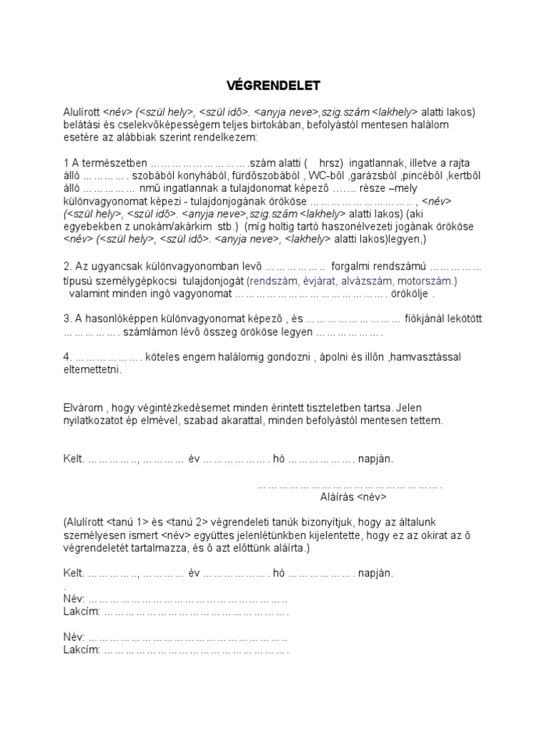 Végrendelet Minta 2016 Letöltés